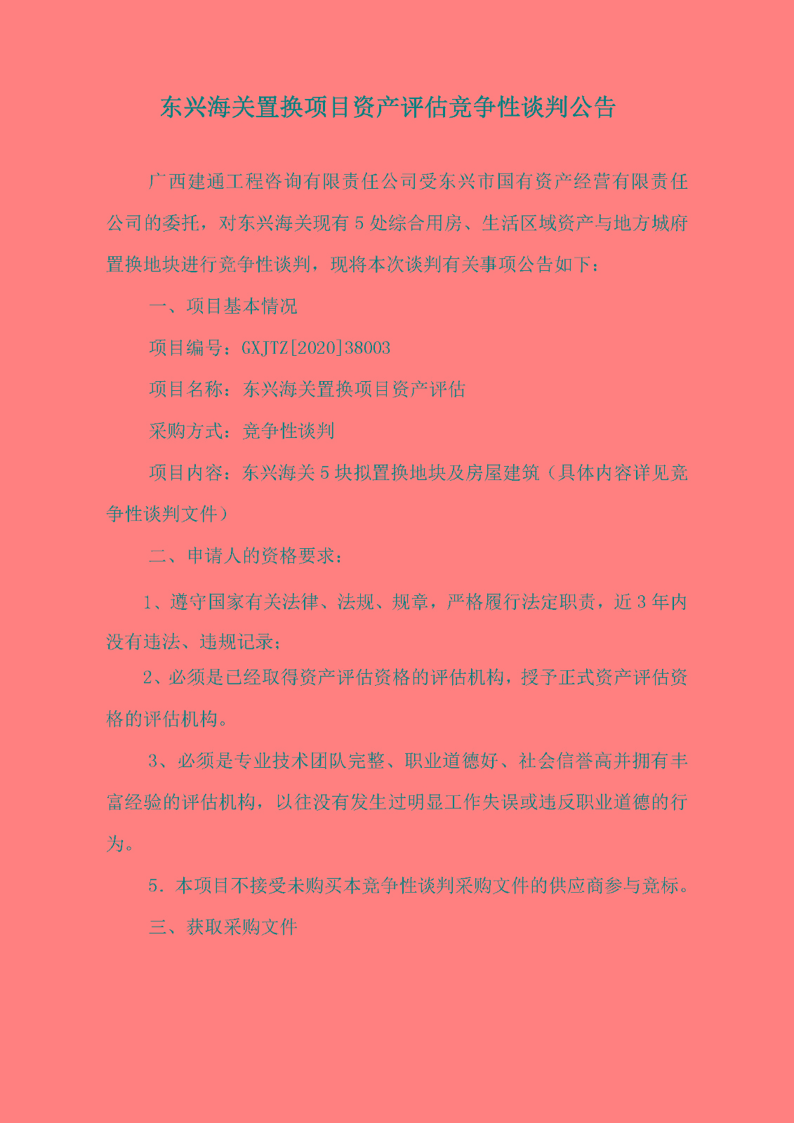 东兴海关置换项目资产评估竞争性谈判公告